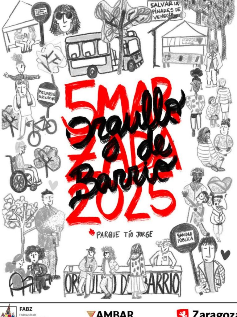 11:30 h MARCHA DE LOS BARRIOS. Con las reivindicaciones vecinales. Desde Plaza del Pilar al Parque Tío Jorge. Acompañados por los Cabezudos de los Barrios, Gaiteros del Rabal y Bucardos. Recorrido: Plaza del Pilar, Echegaray y Caballero, Puente de Piedra, Sixto Celorrio, Plaza San Gregorio a Parque del Tío Jorge.