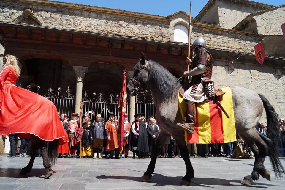12:00 – Entrada trunfal del Conde Aznar Galíndez y sus huestes con salvas de honor y canto del himno.