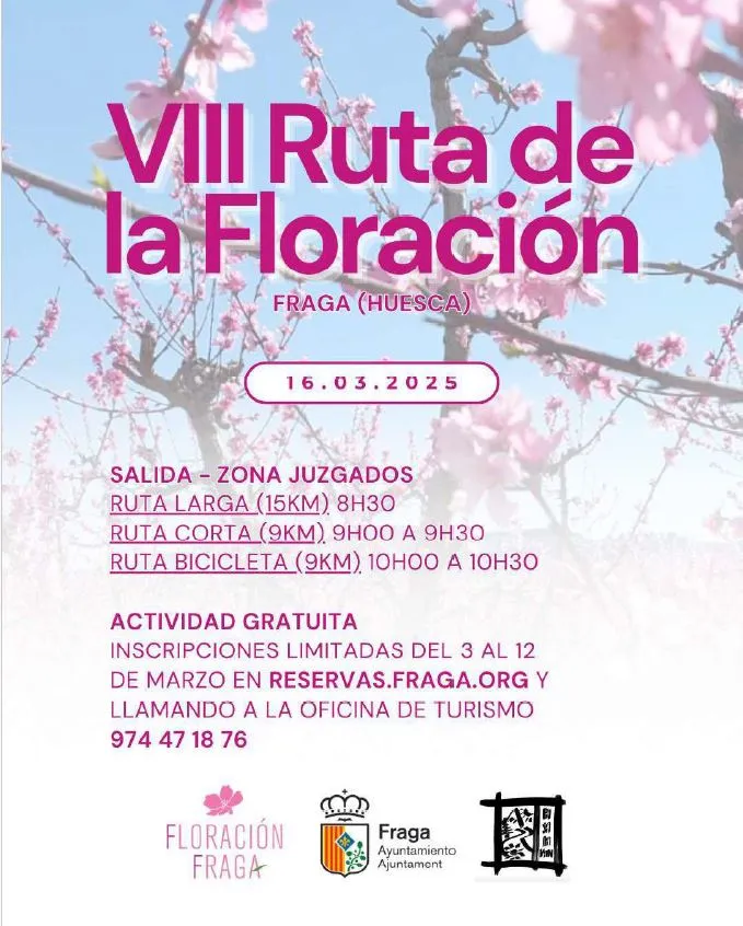 El próximo domingo 16 de marzo de 2025, Fraga celebrará su ya tradicional ruta de la floración, que da la bienvenida a la primavera combinando naturaleza, deporte y cultura.